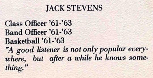 Jack was preceded in death by his parents; his son, Jared Adam Stevens; three sisters and brothers-in-law, Doris Christina and Ralph Mackey, Billie Sue and V.R. Vaughn and Betty Jean and Charley Micham.