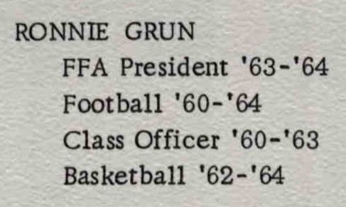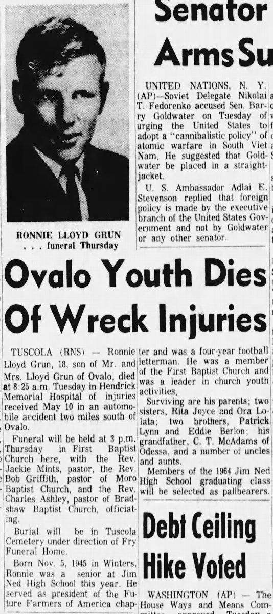 Ronnie, son of Lloyd Berlon Grun and Melba Rosetta McAdams and buried in Tuscola Cemetery, Tuscola, Taylor County, Texas.