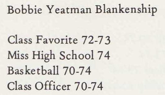 BJ went to school in Buffalo Gap then attended Jim Ned High School, during high school BJ was very active, she was Miss High School, class president, varsity basketball, and on the cheer squad. She is remembered by her classmates as being very kind, warm and caring. She graduated from Jim Ned High School in 1974.