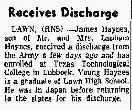 James was born Nov. 14, 1933, in Lawn to the late Lanham and Exie Haynes. He served in the United States Navy in the Korean War, including as a Machinist Mate Second Class on the U.S.S. Consolation and the U.S.S. Zelima, from 1952 to 1956. James worked at the VA Medical Hospital in Dallas for 21 years, retiring in 1995.