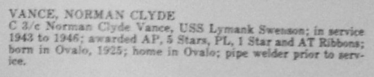Norman Clyde Vance (Ovalo Eagles) - Class Of 1942