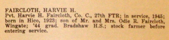 Harvie, son of Odie Raphus Faircloth and Mattie Katherine Mosley, married to Patty Juanita 'Anita' Brown and buried in Levelland Municipal Cemetery, Levelland, Hockley County, Texas.