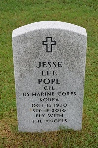 Jesse, son of Jesse Lee Pope, Sr. and Susie Farmer, married to Mary Faye Lormand and buried in Houston National Cemetery, Houston, Harris County, Texas.