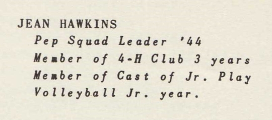 Jean, daughter of John Allen Hawkins and Bessie Beatrice Hancock, married to Alton Jerald Marshall and buried in McBee Cemetery, Ovalo, Taylor County, Texas.