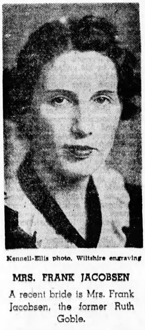 Ruth, daughter of William Irvin Goble and Gertrude Landers, married 1st to Gerald K. Street and married 2nd to Frank P. Jacobsen.