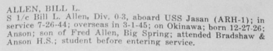 Billy Lewis Allen (Bradshaw Coyotes) - Class Of 1944